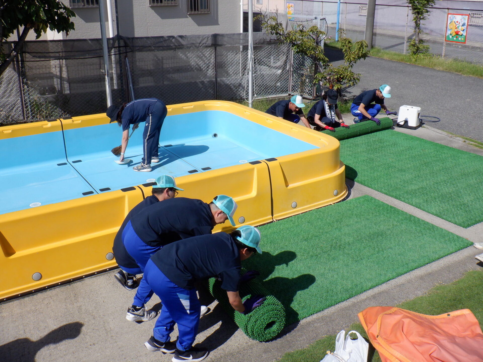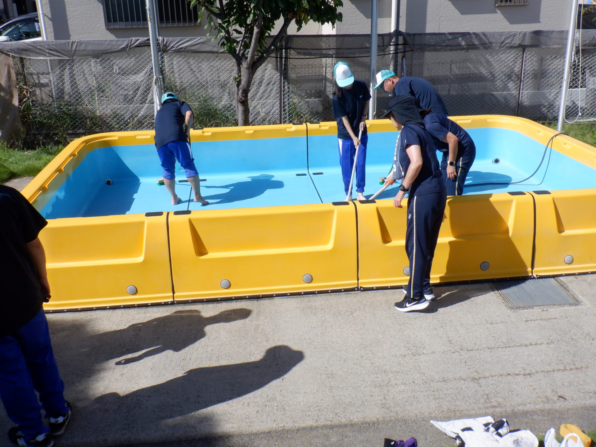 毎年プールが始まる前と終わった後に、「摂津市障害者職業能力開発センター せっつ くすのき」の訓練生のみなさんに掃除をお願いしています。