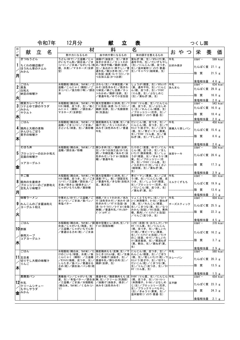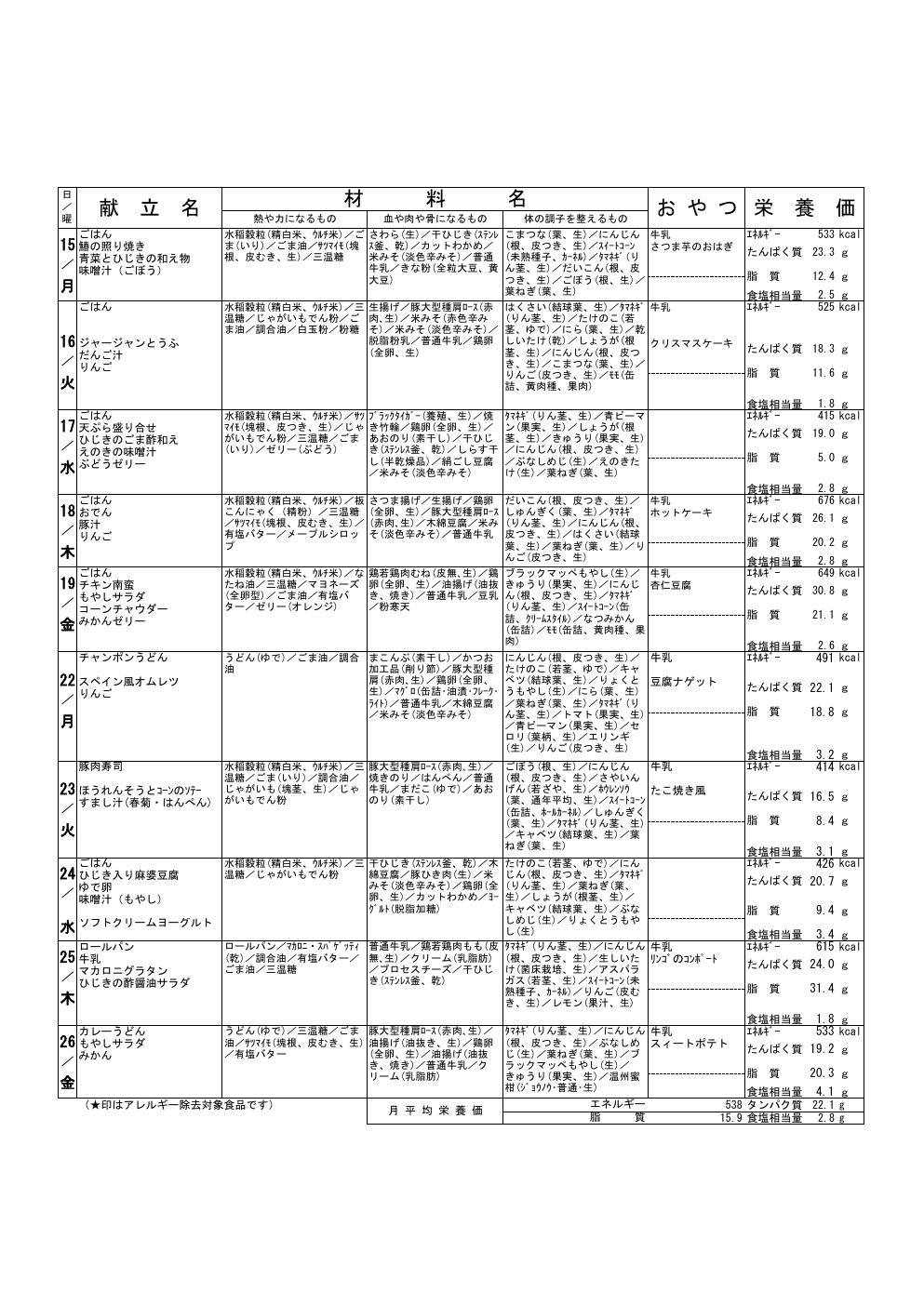 寒さに負けないように12月も栄養たっぷりの給食を食べて体力をつけたいと思います!
