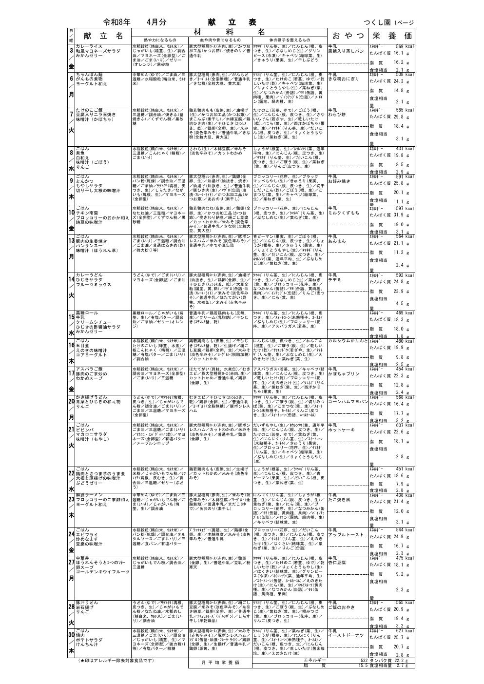 4月の献立